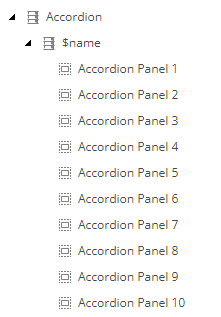 In my case, I also created a branch template that, when creating the Accordion, it pre-creates all of the possible Accordion Panel children and populates the AccordionIndex field appropriately.