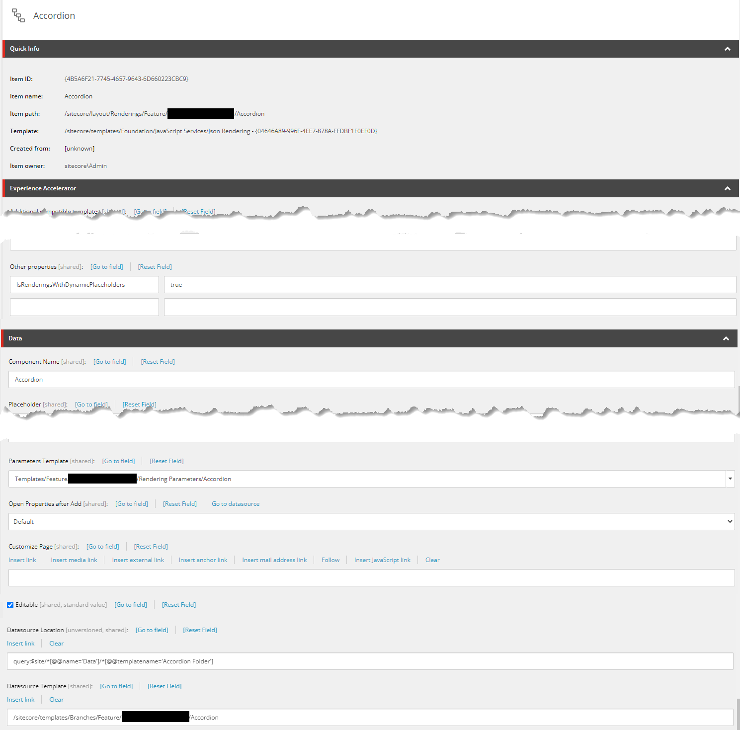 I won't walk you through it here, but you'll also need to create the Headless Variant items for the Accordion and you'll need to add the Accordion rendering to the Available Renderings section of your site.